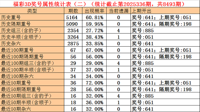 上期奖号:福利彩票3D第2025336期开出奖号641。